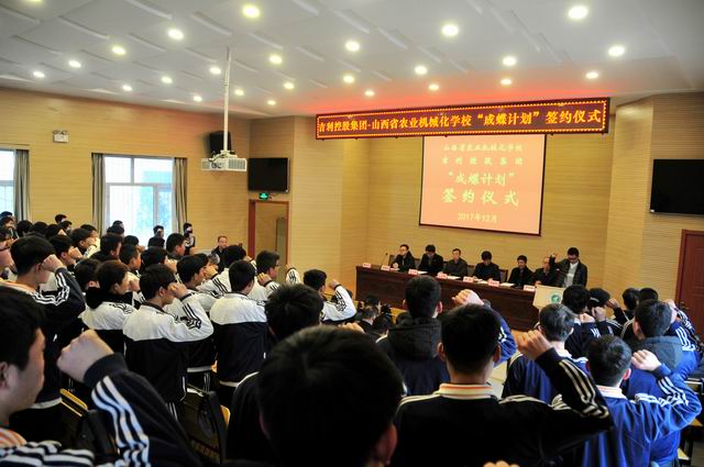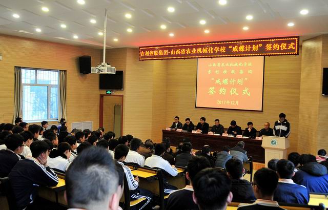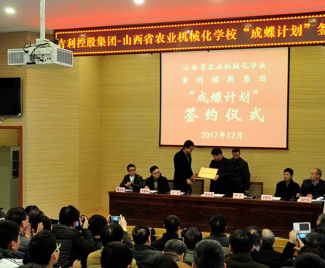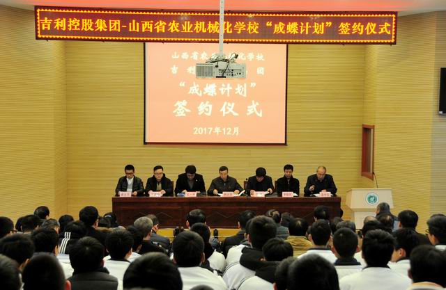 2017年12月22日,我校隆重舉行“成蝶計劃”簽約儀式,校黨委書記李晉與吉利集團(tuán)人力資源部西北大區(qū)招聘經(jīng)理王一洲代表校企簽訂了校企合作協(xié)議,省農(nóng)機局人事教育處韓永英處長、李新民調(diào)研員專程出席了簽約儀式。