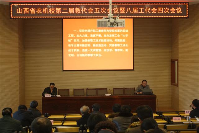2015年1月19日八時,山西省農業(yè)機械化學校召開了第二屆教代會五次會議暨第八屆工代會四次會議,49名正式代表、5名特邀代表參加了會議。
