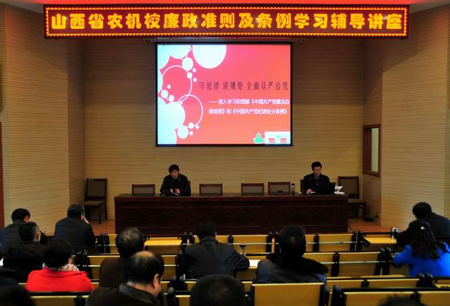為深入學(xué)習(xí)新修訂的《中國(guó)共產(chǎn)黨廉潔自律準(zhǔn)則》和《中國(guó)共產(chǎn)黨紀(jì)律處分條例》兩部黨內(nèi)法規(guī), 12月5日下午政治學(xué)習(xí)時(shí)間,學(xué)校安排校紀(jì)檢委書記李愛保同志做了題為“守紀(jì)律,講規(guī)矩,全面從嚴(yán)治黨”的講座,全體黨員干部參加了講座活動(dòng)。