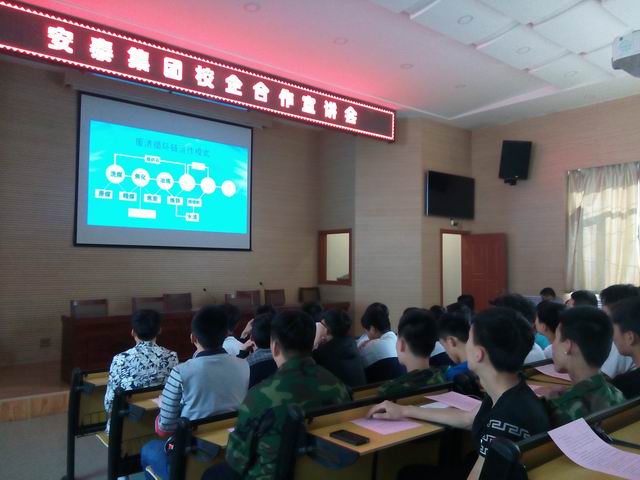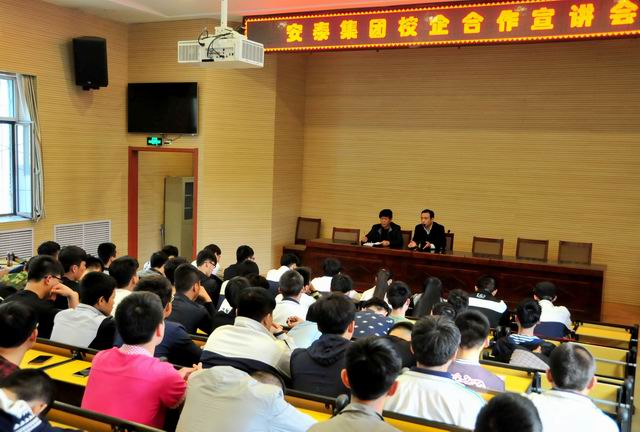 2016年4月14日下午,我校舉行了今年首次校企合作宣傳活動安泰集團(tuán)人力資源部部長趙凌俊、勞動管理處處長張曉娟來我校向二年級學(xué)生作了專場宣講會。學(xué)校黨委書記李晉參會并講話。