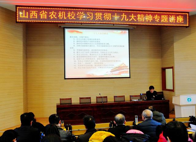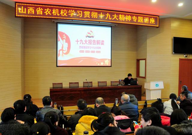 為及時準確把握黨的十九大精神,勉勵廣大黨員不忘初心,牢記使命,激勵全體教職工不斷提振精神狀態(tài),改進工作作風,提升工作效率,12月19日下午,學校黨委書記李晉同志在全體教職工大會上作了題為“十九大報告解讀——學習貫徹落實十九大精神”的專題講座。