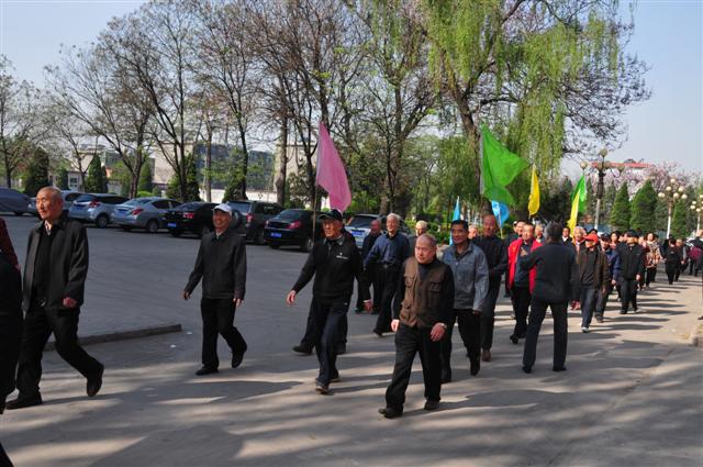 近60名退休老教師、老干部和老工人參加了這次活動(dòng)。大家整起隊(duì)伍,甩開(kāi)步子,在輕松的行進(jìn)音樂(lè)中,在暖暖的春風(fēng)里,精神矍鑠,談笑風(fēng)生,揮舞彩旗,在保衛(wèi)科巡邏車(chē)的引導(dǎo)下繞校園健步走一周。