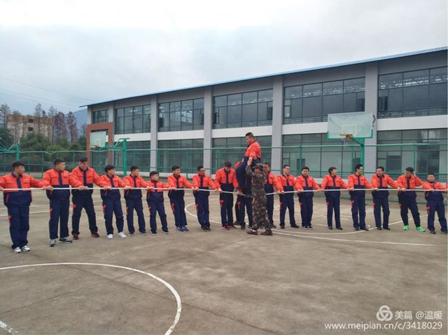 先進(jìn)行了40分鐘的軍姿站立,而后完成生命動(dòng)力圈又叫團(tuán)隊(duì)之環(huán)的活動(dòng)游戲。