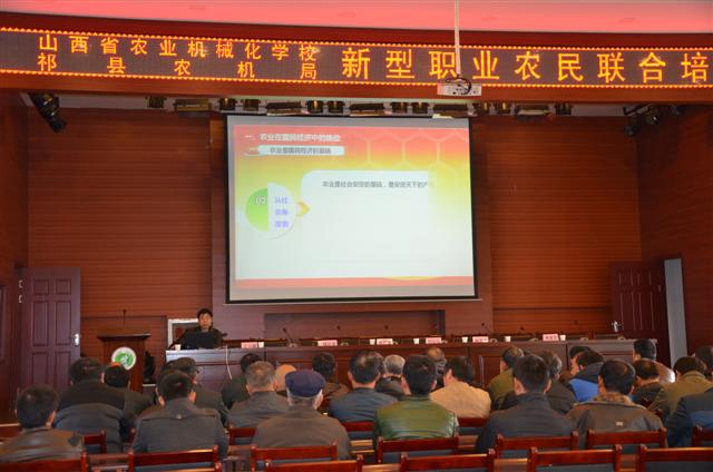 2014112630日,山西省農(nóng)業(yè)機(jī)械化學(xué)校與祁縣農(nóng)機(jī)局聯(lián)合舉行農(nóng)機(jī)操作手培訓(xùn)班,祁縣農(nóng)機(jī)合作社成員共45人參加了培訓(xùn)。