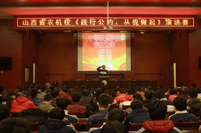 為了深入踐行《中等職業(yè)學(xué)校學(xué)生公約》,進(jìn)一步引導(dǎo)全校學(xué)生樹(shù)立正確的社會(huì)主義核心價(jià)值觀,加強(qiáng)我校學(xué)生的文明風(fēng)氣,提高我校學(xué)生的綜合素質(zhì),展現(xiàn)我校學(xué)子的精神風(fēng)貌。經(jīng)過(guò)充分籌備,由校團(tuán)委、學(xué)生處聯(lián)合舉辦的“踐行公約、從我做起”演講賽于2016年12月27日晚7:30在我校多功能廳拉開(kāi)帷幕。