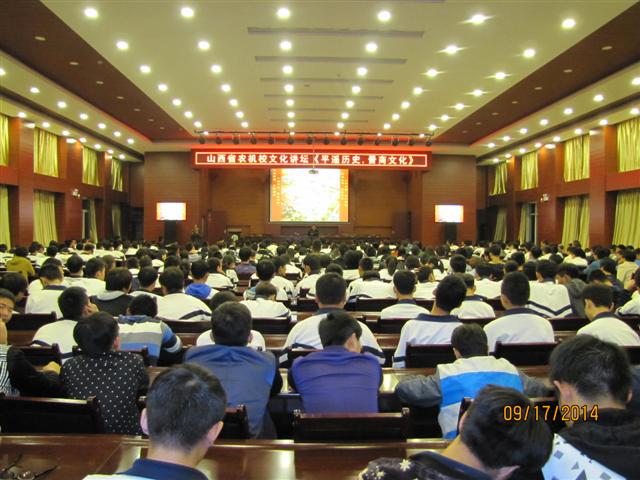 開設(shè)文化講壇,舉辦文化講座,是山西省農(nóng)業(yè)機(jī)械化學(xué)校開展文化教育系列活動(dòng)的舉措之一。通過文化教育提升學(xué)生品味,提高學(xué)生素質(zhì),是山西省農(nóng)業(yè)機(jī)械化學(xué)校后示范建設(shè)的一個(gè)重要方面。