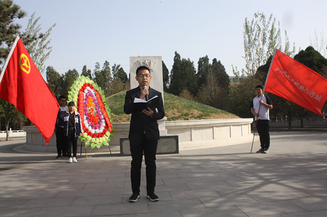 在劉胡蘭烈士墓前,全體師生肅立,向革命烈士墓敬獻花圈,鞠躬并默哀,青年教師代表孟成成致獻詞。全體師生充滿激情地重溫入團誓詞:“我志愿加入中國共產(chǎn)主義青年團,堅決擁護中國共產(chǎn)黨的領(lǐng)導(dǎo)……”激昂的誓言在革命烈士紀(jì)念碑前回蕩,訴說著每一名中國共青團團員的忠誠和責(zé)任。