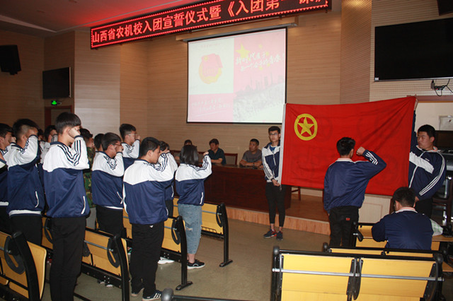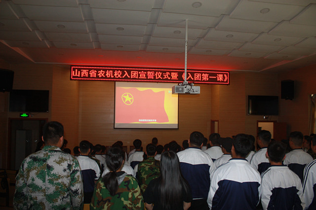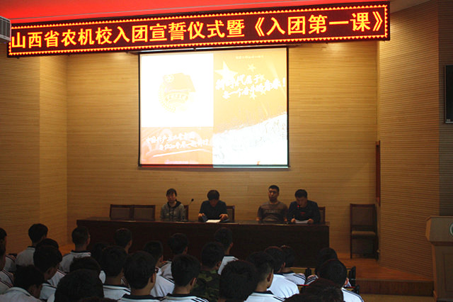 大會(huì)在嘹亮的國(guó)歌聲中拉開了序幕。大會(huì)宣布,關(guān)小康等17名同學(xué)獲準(zhǔn)入團(tuán)。“我志愿加入中國(guó)共產(chǎn)主義青年團(tuán), 堅(jiān)決擁護(hù)中國(guó)共產(chǎn)黨的領(lǐng)導(dǎo)……”, “我們是五月的花海,用青春擁抱時(shí)代……”一聲聲莊嚴(yán)的誓詞,一句句嘹亮的團(tuán)歌,一只只高舉的拳頭,表達(dá)了團(tuán)員們對(duì)黨和國(guó)家的忠誠(chéng)、履行誓詞砥礪前行的決心、實(shí)現(xiàn)中國(guó)復(fù)興夢(mèng)的期待。最后,校長(zhǎng)、校黨委書記李晉講話。他通過(guò)幾代領(lǐng)導(dǎo)人對(duì)青年的寄語(yǔ)引入,結(jié)合我校實(shí)際剖析了當(dāng)前學(xué)生團(tuán)員的意識(shí)形態(tài),進(jìn)而提出了職業(yè)發(fā)展目標(biāo)和遠(yuǎn)大理想信念,希望團(tuán)員們能成為有理想、有本領(lǐng)、有擔(dān)當(dāng)、有創(chuàng)新的優(yōu)秀工匠。