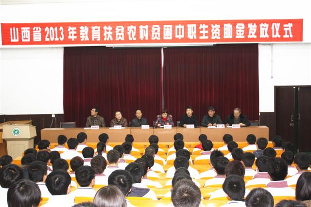 2013年12月31日上午,省扶貧辦派郭晉萍副處長和楊喆二同志專程赴我校主持2013年教育扶貧資助金發(fā)放儀式,為我校來自貧困地區(qū)的98名貧困生每人發(fā)放了2000元的助學(xué)金。