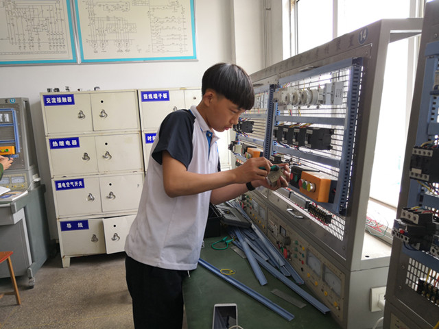 在實(shí)訓(xùn)樓電氣實(shí)訓(xùn)室,正在開展“電氣控制電路組裝與調(diào)試”學(xué)生技能競賽。賽場上選手們按照競賽題目要求,現(xiàn)場進(jìn)行了選裝器件、安裝接線、調(diào)試運(yùn)行、故障排除、直到試車成功等一系列制作過程展示。經(jīng)過緊張激烈角逐,評委認(rèn)真評審,最后閆常毅獲第一名,霍永佳獲第二名,李杰和郝廷兆獲得第三名和第四名。