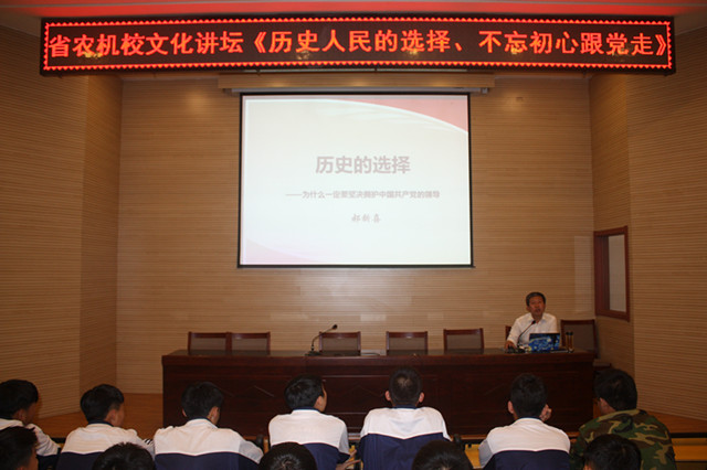 晚自習(xí)時間,校團(tuán)委邀請旅游教育研究室副主任郝新喜老師作題為《歷史人民的選擇,不忘初心跟黨走》的講座。郝老師用深厚的歷史知識、鮮活的事例、真實(shí)的照片等從我國建國史和黨史引入,結(jié)合當(dāng)前現(xiàn)在形勢,分析了我黨在新時期社會主義建設(shè)中所發(fā)揮的極其重要的作用,闡述了只有堅(jiān)持中國共產(chǎn)黨的領(lǐng)導(dǎo)才能實(shí)現(xiàn)民族復(fù)興的中國夢。講座贏得了大家陣陣熱烈的掌聲,全體同學(xué)接受了一次精神的洗禮,更加堅(jiān)定了對中國共產(chǎn)黨的忠誠和信念,激發(fā)了對中國前途命運(yùn)的責(zé)任感,表示一定要不忘初心,牢記使命,高舉新時代中國特色社會主義偉大旗幟,實(shí)現(xiàn)中華民族偉大復(fù)興的中國夢。