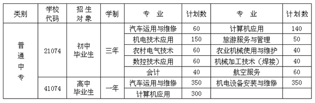 學(xué)校師資力量雄厚,有專兼職教師216名。設(shè)有汽車工程系、機械工程系、農(nóng)機系、電氣工程系、計算機系、基礎(chǔ)部和旅游教研室等7個教學(xué)部門,開設(shè)有20多個中專專業(yè),其中“汽車運用與維修”“機電技術(shù)應(yīng)用”“電子電器應(yīng)用與維修”“數(shù)控技術(shù)應(yīng)用”“機械加工技術(shù)”“農(nóng)業(yè)機械使用與維護”“計算機應(yīng)用”為省級示范專業(yè)。