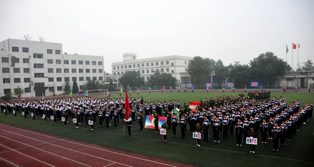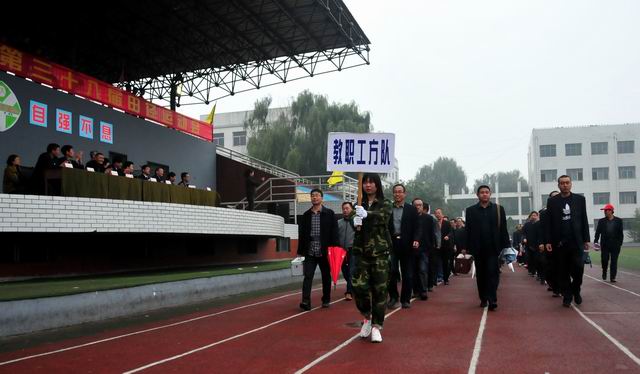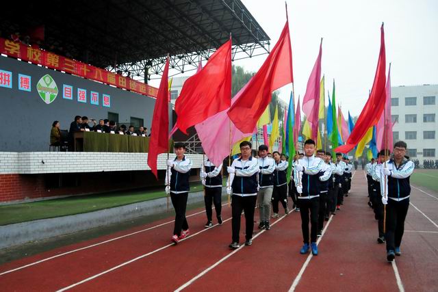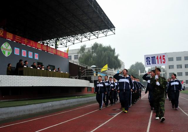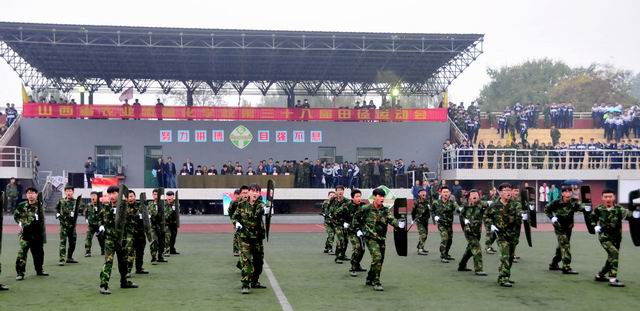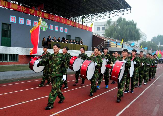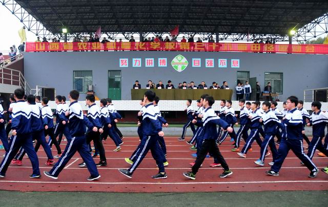 2016年10月19日9時,秋風(fēng)蕭蕭,秋雨淅淅,彩旗獵獵,軍樂隆隆,山西省農(nóng)業(yè)機(jī)械化學(xué)校國旗班、裁判員、教工、各個班級組成30個方陣,整裝正步通過主席臺,拉開了第38屆校運會的序幕。山西省農(nóng)機(jī)局領(lǐng)導(dǎo)張本源總工程師、學(xué)校領(lǐng)導(dǎo)和離退休老領(lǐng)導(dǎo)、老教師在主席臺上檢閱了學(xué)校的師生隊伍。