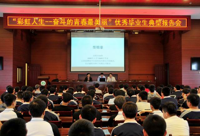59下午活動(dòng)時(shí)間,我校就業(yè)辦、學(xué)生處組織舉辦了以“彩虹人生---奮斗的青春最美麗”為主題的優(yōu)秀畢業(yè)生典型報(bào)告會(huì),2009屆畢業(yè)生柴錦豪就自己在學(xué)校的學(xué)習(xí)經(jīng)驗(yàn)、畢業(yè)后創(chuàng)業(yè)的事跡與全體在校生做了分享。柴錦豪同學(xué)是我校2004級(jí)高機(jī)應(yīng)12班學(xué)生,在校期間,認(rèn)真學(xué)習(xí)專業(yè)知識(shí),積極參加社團(tuán)活動(dòng),利用課余時(shí)間加強(qiáng)技能訓(xùn)練,畢業(yè)后考入山西農(nóng)業(yè)大學(xué)。大學(xué)畢業(yè)后,入職北京北農(nóng)綠亨科技發(fā)展有限公司,受公司派遣,赴澳大利亞阿德萊德進(jìn)修無(wú)土栽培,引進(jìn)澳大利亞管道水培技術(shù),后創(chuàng)建山西南澳綠亨莊園貿(mào)易有限公司,入股北京鑫陽(yáng)光種子有限公司,身價(jià)千萬(wàn)。他表示,自己今天的成功,離不開老師的辛勤培育,離不開師長(zhǎng)的教誨,是母校的培養(yǎng)才有了今天的成就。大會(huì)氣氛熱烈,掌聲不斷,高潮迭起。報(bào)告會(huì)后,同學(xué)們表示,要以優(yōu)秀畢業(yè)生為榜樣,學(xué)好專業(yè)技能,加強(qiáng)社會(huì)實(shí)踐,弘揚(yáng)工匠精神,學(xué)有所成,為社會(huì)做貢獻(xiàn),為母校添光彩。