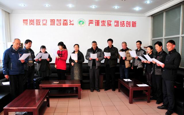 為進(jìn)一步宣傳貫徹黨的十九大精神,激勵(lì)我校黨員干部職工不忘初心,牢記使命,堅(jiān)定信念跟黨走,自覺踐行“紅船精神”,積極踐行入黨誓詞,學(xué)校于1月9日下午政治活動(dòng)時(shí)間開展了“唱響入黨誓詞”主題黨日活動(dòng),以支部為單位組織全體黨員學(xué)唱《我宣誓》。