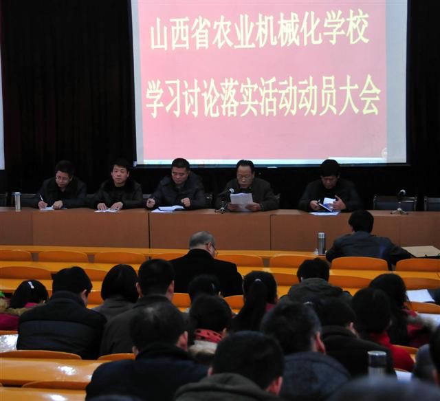 孫書記指出,深入開展學(xué)習(xí)討論落實(shí)活動(dòng),是貫徹落實(shí)習(xí)近平總書記系列重要講話精神和黨中央對山西工作重要指示要求的重要舉措,是落實(shí)省委王儒林書記重要工作部署、實(shí)現(xiàn)治晉興晉強(qiáng)晉的必然要求,是我校進(jìn)一步凈化教育教學(xué)環(huán)境、促進(jìn)學(xué)校可持續(xù)健康發(fā)展的一次機(jī)遇。孫書記強(qiáng)調(diào),各黨支部要認(rèn)真貫徹落實(shí)校黨委的決定和安排部署,組織黨員干部認(rèn)真學(xué)習(xí)、深刻領(lǐng)會、全面貫徹落實(shí)動(dòng)員大會的精神,堅(jiān)決把思想統(tǒng)一到習(xí)近平總書記系列重要講話精神和中央對山西工作的重要指示上來,堅(jiān)決把認(rèn)識統(tǒng)一到省委的重大決策部署上來,以積極的態(tài)度和務(wù)實(shí)的精神投身到活動(dòng)中,圓滿完成各項(xiàng)任務(wù)。孫書記就活動(dòng)的開展提出三點(diǎn)要求:一要加強(qiáng)組織領(lǐng)導(dǎo);二要堅(jiān)持“四個(gè)相結(jié)合”,即開展專項(xiàng)活動(dòng)要與創(chuàng)建文明單位相結(jié)合、與后示范校建設(shè)相結(jié)合、與創(chuàng)先爭優(yōu)相結(jié)合、與黨建工作相結(jié)合;三要堅(jiān)持統(tǒng)籌兼顧,做到“兩不誤、兩促進(jìn)”,扎實(shí)有序做好各項(xiàng)工作,努力推動(dòng)學(xué)校建設(shè)再上新臺階。