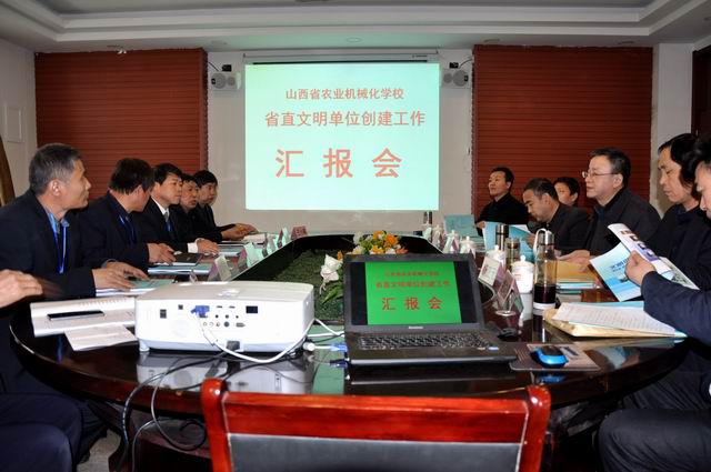 2015324,省直文明辦考核組王宏偉、楊正元、李峰、鄭向勇一行在省農(nóng)機(jī)局領(lǐng)導(dǎo)侯振全、尚志剛陪同下,來(lái)校進(jìn)行了省直文明單位復(fù)評(píng)檢查。