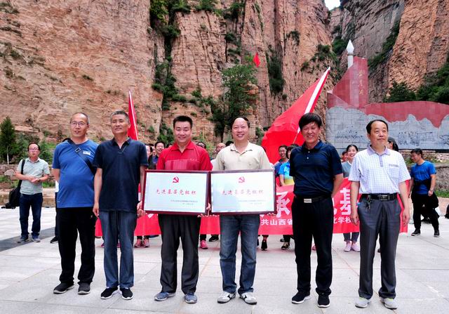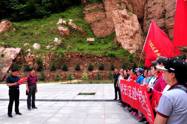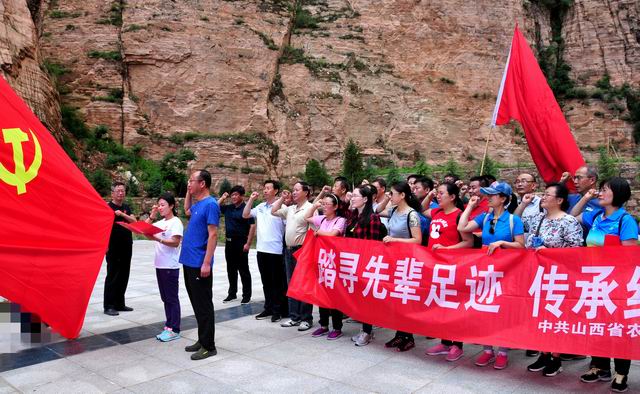 在黃崖洞紀(jì)念碑前,全體黨員和預(yù)備黨員面對鮮紅的黨旗莊嚴(yán)宣誓,鏗鏘有力的誓言,久久回蕩在群山峻嶺。受表彰的先進黨支部和優(yōu)秀共產(chǎn)黨員、優(yōu)秀黨務(wù)工作者,雙手慎重接過獎牌、證書,心中默默許下對黨的承諾。李晉書記慷慨激昂的講話,使全體黨員倍感肩負的重任,增添了奮力爭先的勇氣。最后的大合唱《沒有共產(chǎn)黨就沒有新中國》,表達了全體黨員對黨的熱愛和永遠跟黨走的堅定信念。