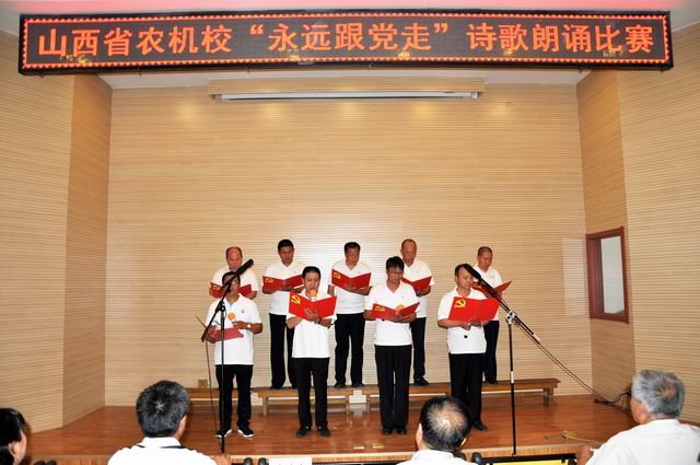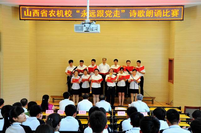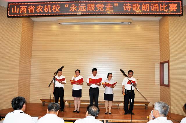 6月28日下午,學校黨委在東階梯教室舉行了慶七一“永遠跟黨走”詩歌朗誦比賽。學校黨政領(lǐng)導、全體黨員、中層干部以及入黨積極分子觀看了比賽。